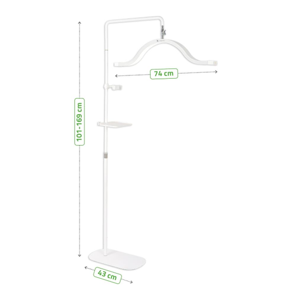 Εργονομική κατασκευή: Ρυθμιζόμενο ύψος 101–169 cm και μήκος βραχίονα 74 cm για άνετη χρήση.