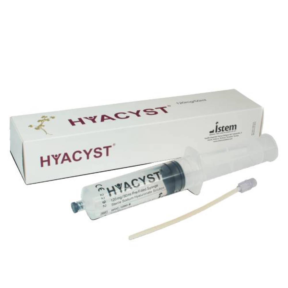 Το HYACYST ταξινομείται ως ιατρικό προϊόν για την διαμέση κυστίτιδα που αποτελείται από πολύ καθαρό φυσικό υαλουρονικό οξύ μη ζωικής προέλευσης σε ρυθμισμένο φυσιολογικό χλωριούχο νάτριο που έχει ρΗ 7.1-7.3. Το Hyacyst είναι ένα ιξώδες διάλυμα που αποτελείται από ένα κλάσμα χαμηλού μοριακού βάρους και χρησιμοποιείται ως αποστειρωμένο υγρό έκπλυσης με ουροθηλιακές αλλαγές στον ουρητήρα, στην ουροδόχο κύστη και στο έξω στόμιο της ουρήθρας.