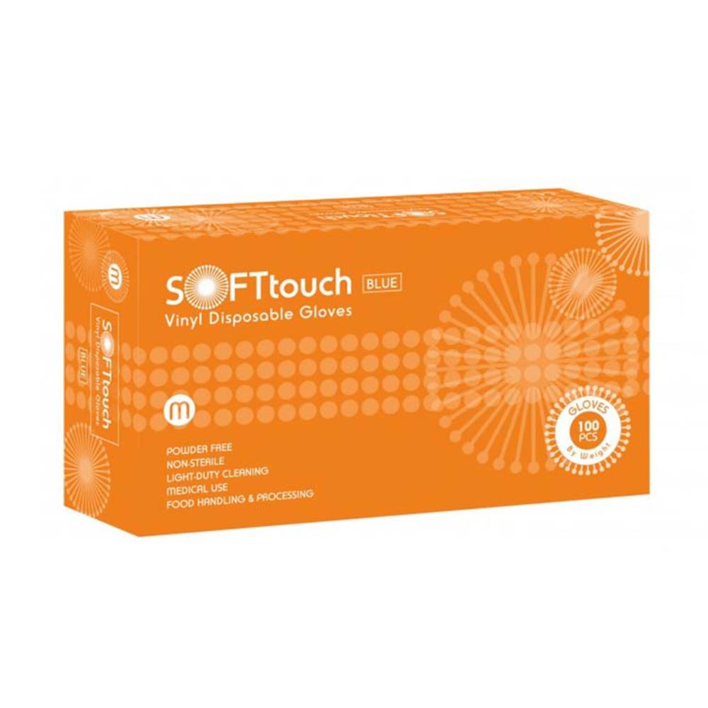 Γάντια Βινυλίου Λευκά και Μπλε, Χωρίς Πούδρα Soft Touch (100άδα)
