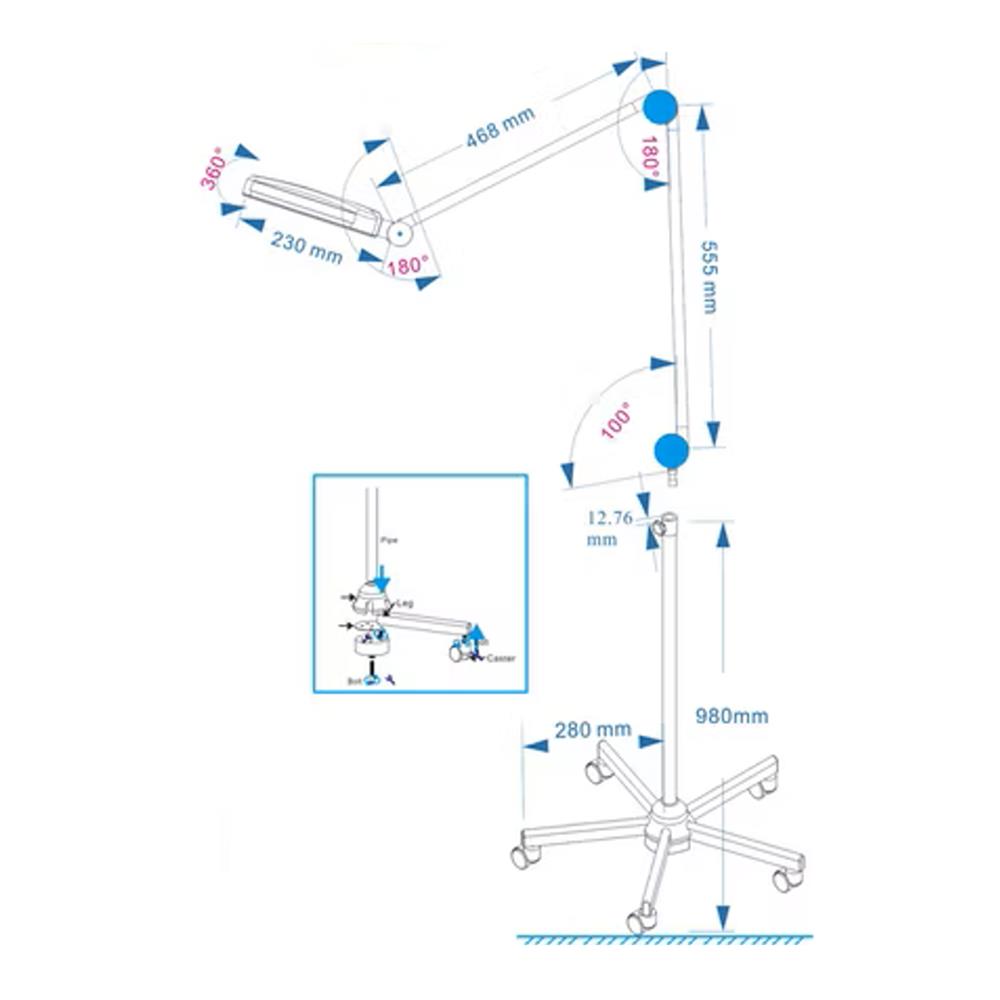 Φωτισμός πλάγιος τροχήλατος με 10 LEDx12 Watt 68000 Lux στα 60cm
