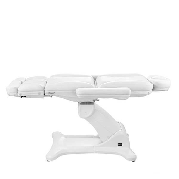 Upmarket podiatry chair specially conceived to optimise the workspace thanks to its 240° rotation. Equipped with 3 motors that control height, backrest and seat inclination. Reclining armrests and adjustable headrest. Legrests adjustable in height by gas lift. Also available in 5 motors (2246C). The button panels built in the backrest, the legrest and the seat allow a complete control of all functions from any point of the chair. This version includes RESET function to bring the chair back to zero position. White PU upholstery of high quality that eases cleaning.