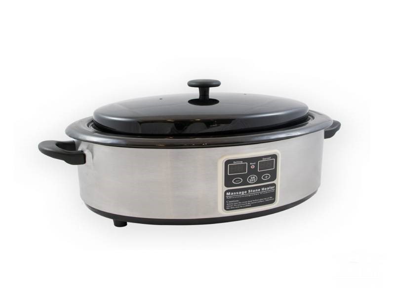 Small digital hot stone heater for massage therapy. It keeps a constant temperature between 40C and 50C. Slotted spoon included.