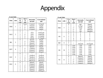 Glucose (GLU), Bilirubin (BIL), Specific gravity (SG), PH, Ketone body (KET), Occult blood (BLD), Protein (PRO), Urobilinogen (URO), Nitrite (NIT), Leukocytes (LEU), Ascorbic acid (VC).