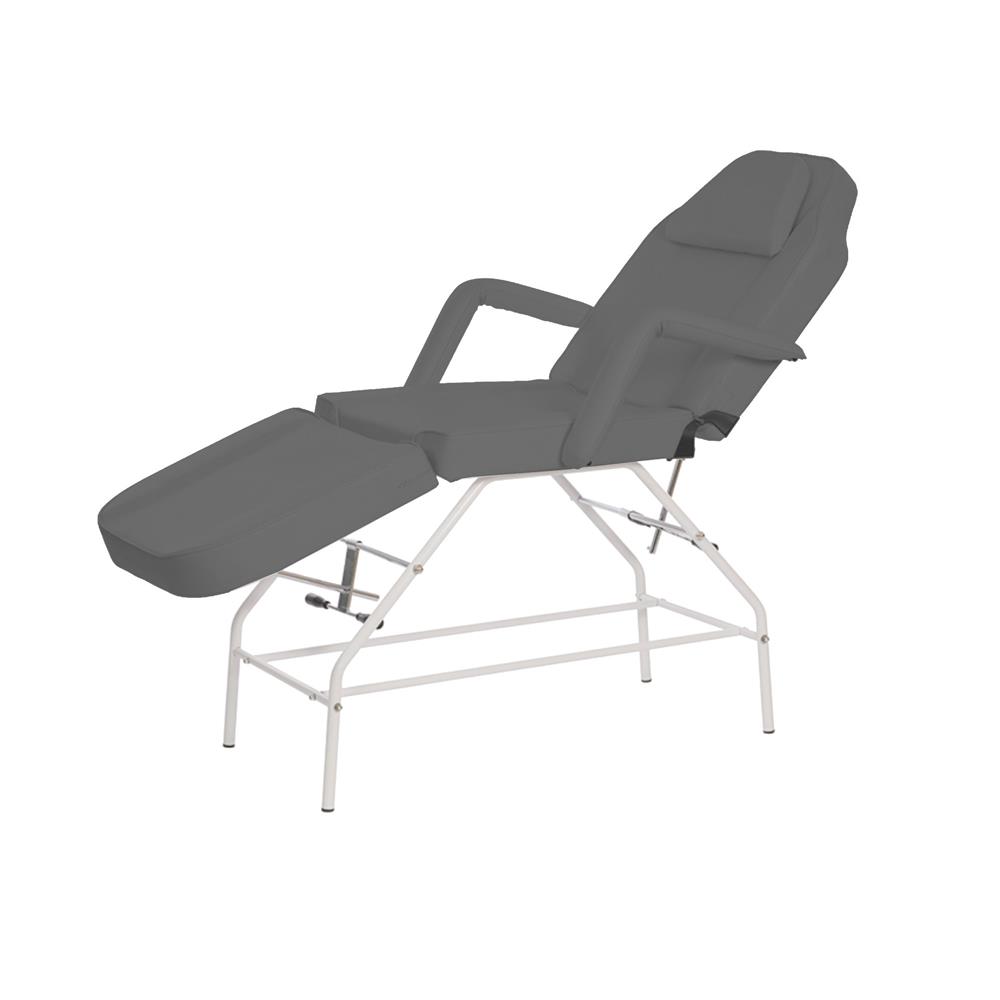 Description:Backrest and legrest inclination is manually adjustable. Removable armrests and headrest cushion with breather hole. Easy-to-clean white PVC upholstery.