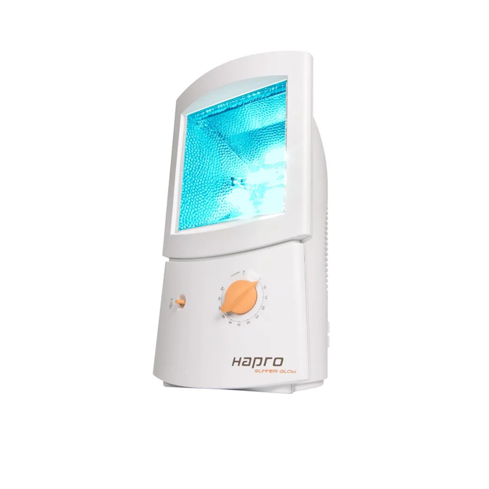 Το Summer Glow HB 404 είναι το πιο μικρό solarium σώματος της σειράς Hapro για οικιακή χρήση. Eίναι πάντα διαθέσιμο και έτοιμο για χρήση. Τοποθετήστε το όπου βρίσκεστε εκείνη τη στιγμή, καθιστοί ή όρθιοι, για μια χαλαρωτική συνεδρία μαυρίσματος και μια λαμπερή, υγιή εμφάνιση. Η λάμπα υψηλής πίεσης 400W και το παραβολικό σύστημα ανακλαστήρα δημιουργούν ευρύ πεδίο μαυρίσματος, ώστε να μαυρίζετε ταυτόχρονα το πρόσωπο, τους ώμους και το ντεκολτέ.