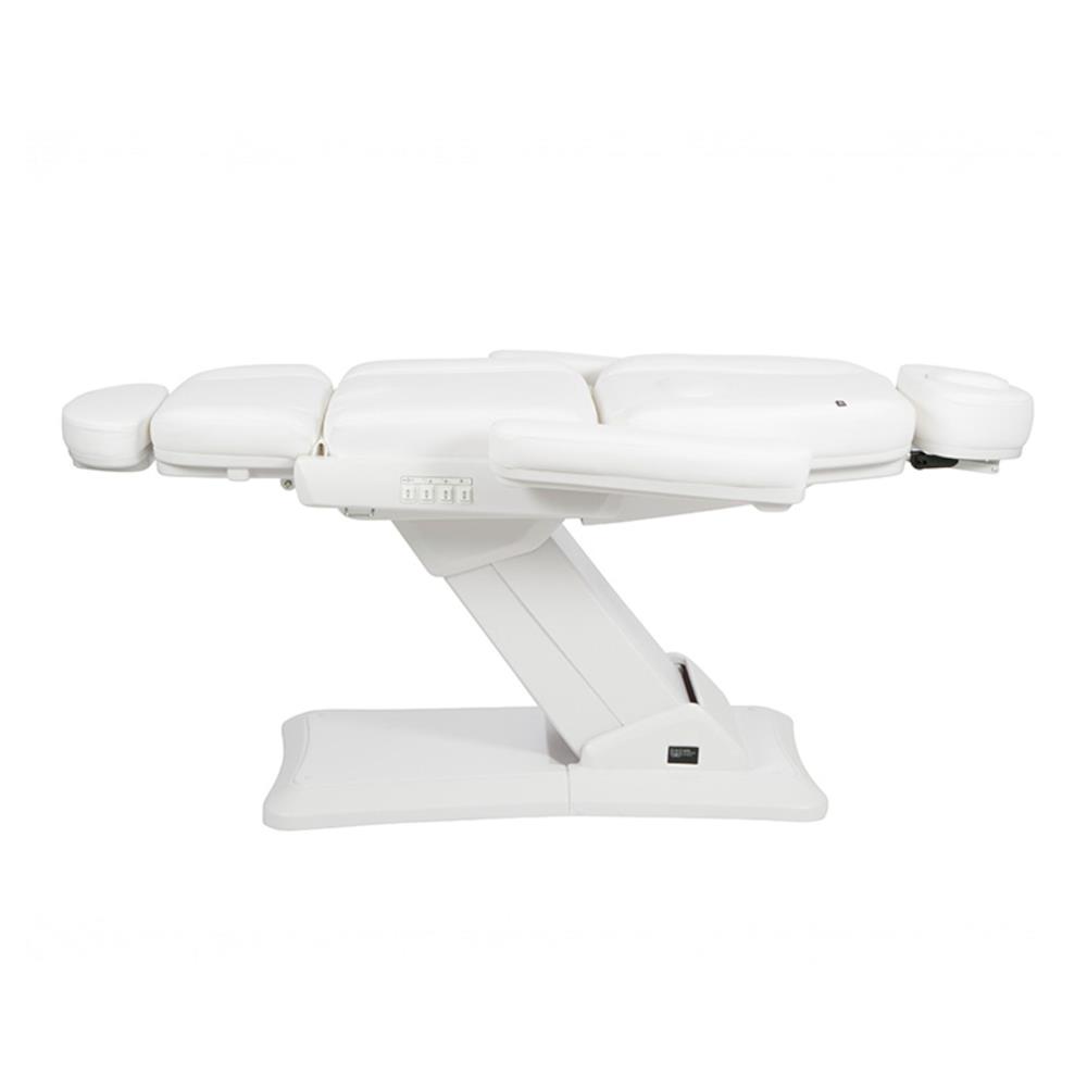 Κομψή και άνετη πολυθρόνα εξοπλισμένη με 4 μοτέρ που ελέγχουν το ύψος, την πλάτη και την κλίση του καθίσματος. Υποπόδιο ρυθμιζόμενο με ανελκυστήρα αερίου. Αναπαυτικά μπράτσα και ρυθμιζόμενο προσκέφαλο. Τα πάνελ κουμπιών που είναι ενσωματωμένα στην πλάτη του καθίσματος, το στήριγμα για τα πόδια και το κάθισμα επιτρέπουν τον πλήρη έλεγχο όλων των λειτουργιών από οποιοδήποτε σημείο της καρέκλας. Αυτή η έκδοση περιλαμβάνει τη λειτουργία RESET για να επαναφέρετε την καρέκλα στη μηδενική θέση. Λευκή ταπετσαρία PU υψηλής ποιότητας για εύκολο καθαρισμό.