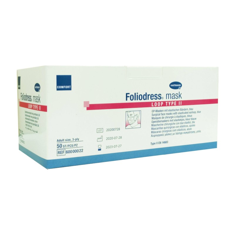 Μάσκες χειρουργικές Hartmann με λάστιχο γαλάζιες Foliodress Loop Type II (50άδα)