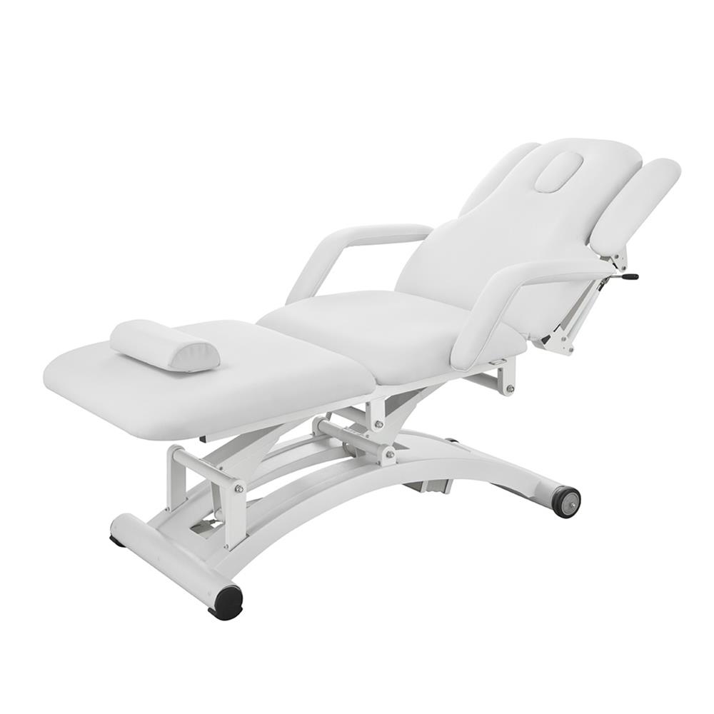 Κρεβάτι ειδικά σχεδιασμένο για φυσιοθεραπευτικές θεραπείες. Εξοπλισμένο με 3 μοτέρ που ελέγχουν το ύψος, την πλάτη και το κεντρικό τμήμα. Σύστημα διπλού υποβραχιόνιο στο οποίο τα σταθερά μέρη είναι ρυθμιζόμενα με gas lift και τα πλευρικά είναι αφαιρούμενα. Το τμήμα της κεφαλής περιλαμβάνει ειδική οπή αναπνοής, για μεγαλύτερη άνεση. Διαθέτει επιπλέον μαξιλάρι στήριξης. Η κυρτή βάση του κρεβατιού διαθέτει δύο ρόδες για εύκολη μετακίνηση. Ταπετσαρία PU υψηλής ποιότητας για εύκολο καθαρισμό.