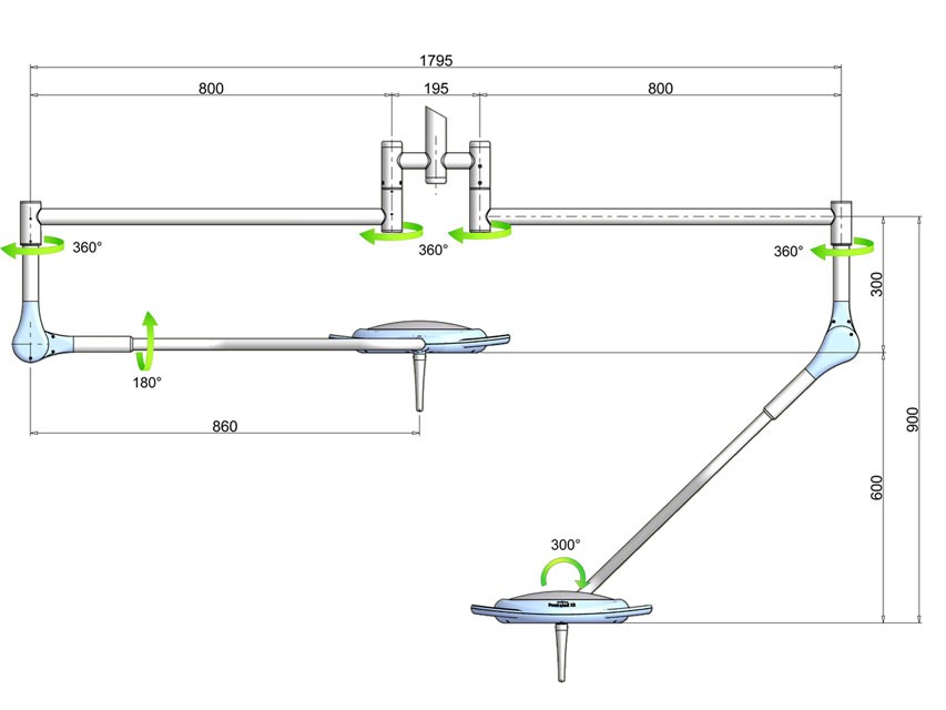 Χειρουργικός φωτισμός οροφής Pentaled 12 με 12 LEDs - Διπλός