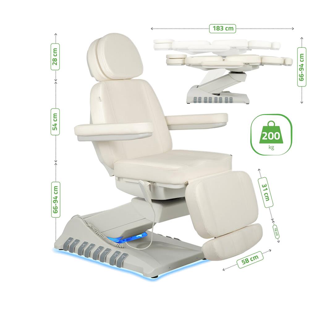 Σχεδιασμένο για επαγγελματίες και φτιαγμένο για να εντυπωσιάζει, το Luxoria PRO 5 είναι ένα μοντέρνο, πλήρως ηλεκτρικά ελεγχόμενο τραπέζι αισθητικών θεραπειών, ειδικά για υψηλών απαιτήσεων ινστιτούτα ομορφιάς, κλινικές αισθητικής ιατρικής και πολυτελή spa. Με πέντε ανεξάρτητες ρυθμίσεις μέσω μοτέρ, ενσωματωμένα θερμαντικά μέτρα, και μινιμαλιστική, κομψή σχεδίαση, αυτό το κάθισμα προσφέρει αξεπέραστη άνεση, λειτουργικότητα και στυλ.