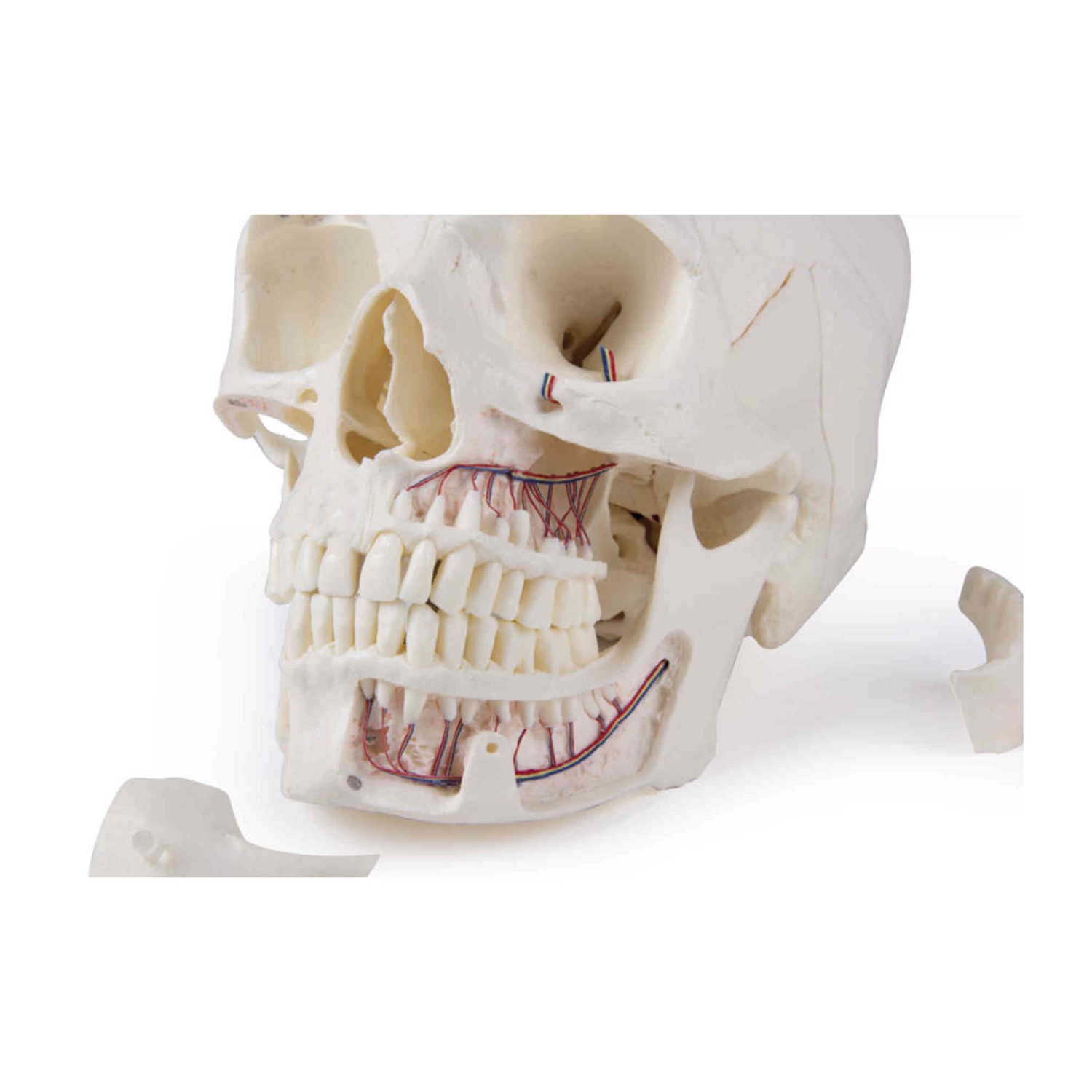 Η άνω γνάθος και η κάτω γνάθος εκθέτουν τις δομές της οδοντοφυΐας, τις ρίζες, τα οδοντικά αγγεία και τα νεύρα είναι ορατά.